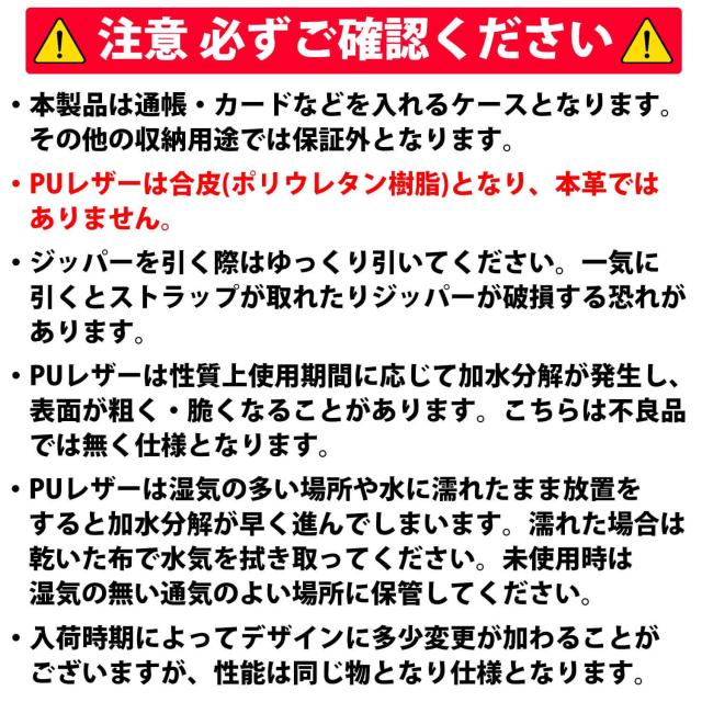 ・本製品は通帳・カードなどを入れるケースとなります。その他の収納用途では保証外となります。