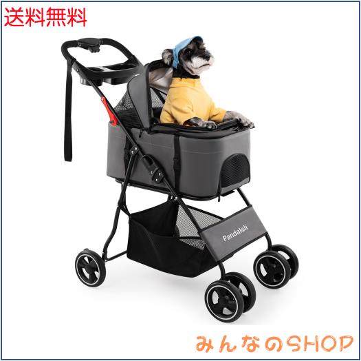 Pandaloli ペットカート ベビーカー 犬 バギー:小型犬 中型犬 猫 多頭 カート 4輪 軽量コンパクト 飛び出し防止リード2本付き 前輪360°