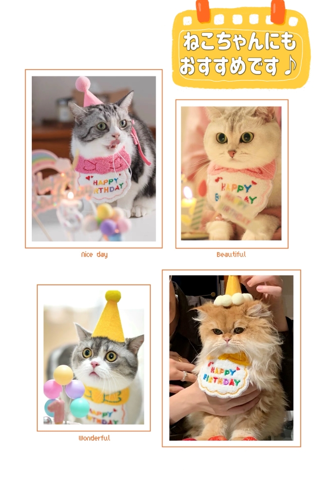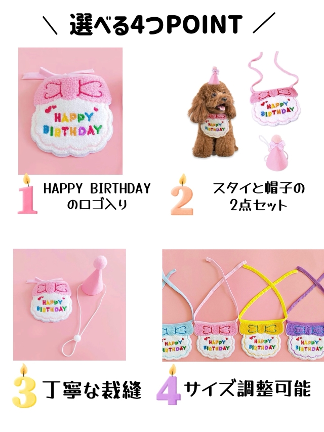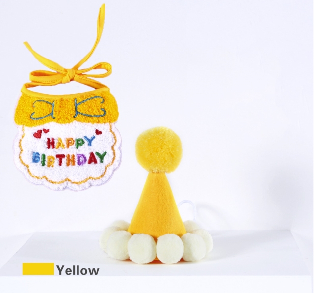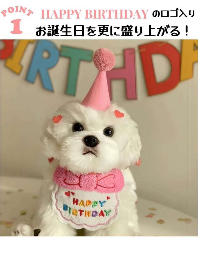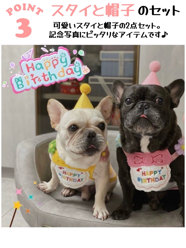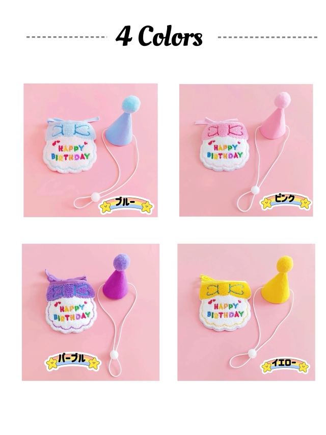 帽子と前掛けがセットになったペット用誕生日グッズです。