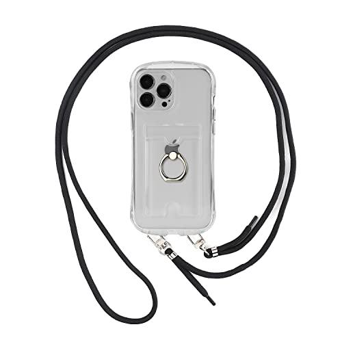 Pelanty for i Phone 14 Pro 縄掛けケース i Phone14 Pro クリアケース i Phone 14pro リングケース 360°回転 柔軟 シリコン 透明TPUバンパー i Phone14pro 背面カバー IC カード収納 ネック ショルダー ストラップ付き 横置きスタンド機能 アイフォン14pro 6.1インチ スマホケース 落下防止 四つ角部分衝撃吸収 指紋防止 薄型 軽量 保護ケース (縄掛カード収納けリング-透明)