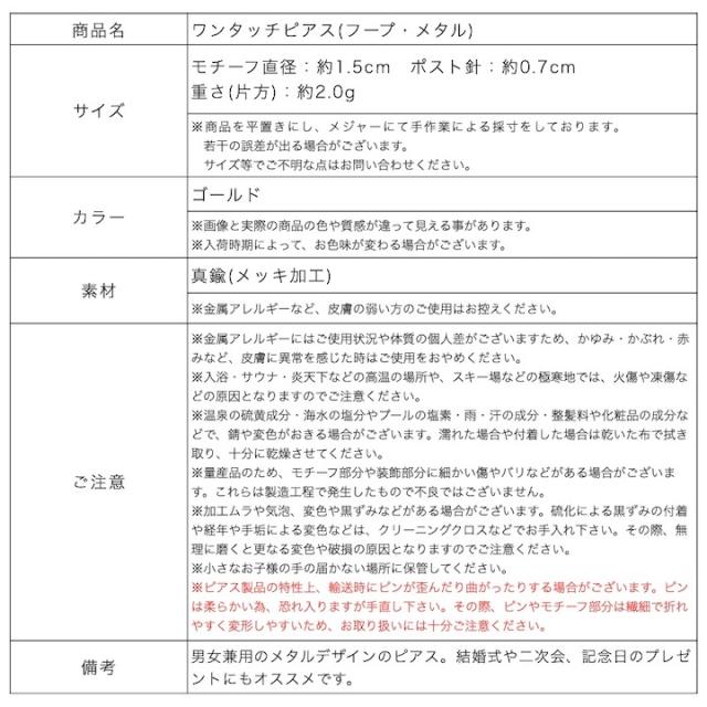 【商品名】ワンタッチピアス(フープ・メタル)