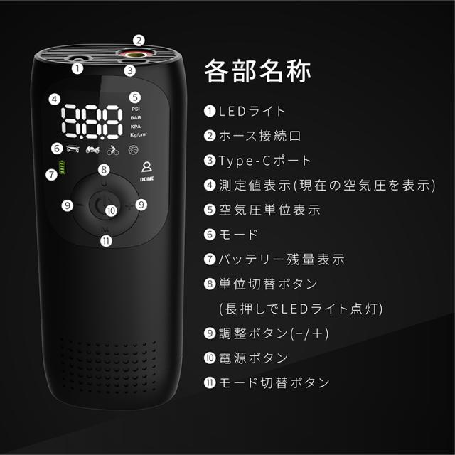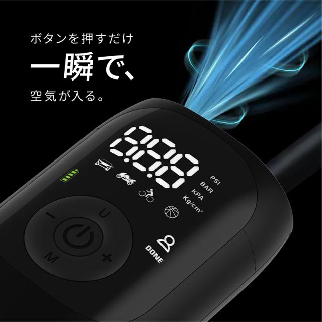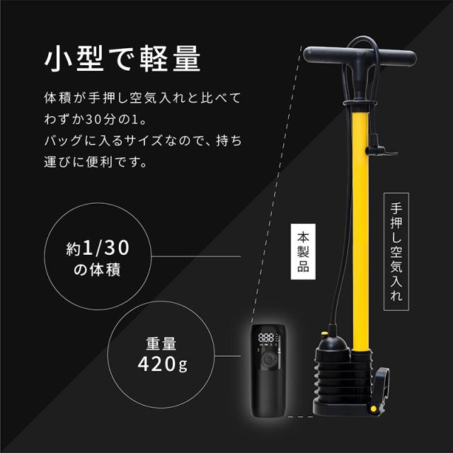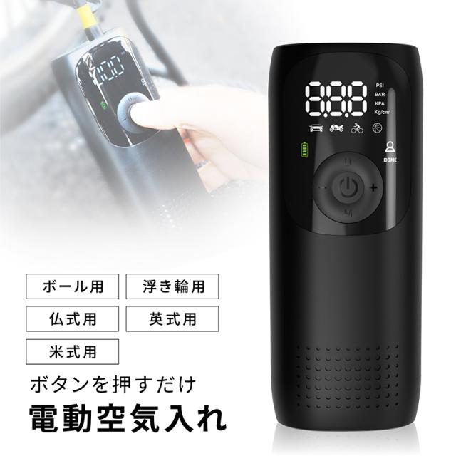 電動空気入れ バイク 充電式 自動 小型 コンパクト 自動車 エアポンプ サイクル 仏式 英式 米式 ロードバイク クロスバイク