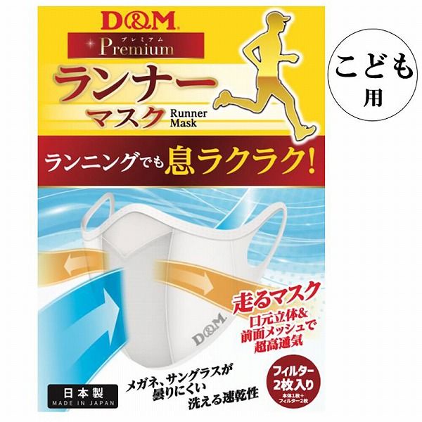 D&M/ディーアンドエム ランナーマスク こども用 ホワイト 109479 ランニングマスク スポーツマスク スポーツ用マスク 運動用マスク ランナー用マスク ランニング用マスク ランニング ジョギング 走るマスク 苦しくない 呼吸しやすい 子供用 子ども用 キッズ ジュニア Sサイズ 白 WHITE