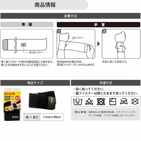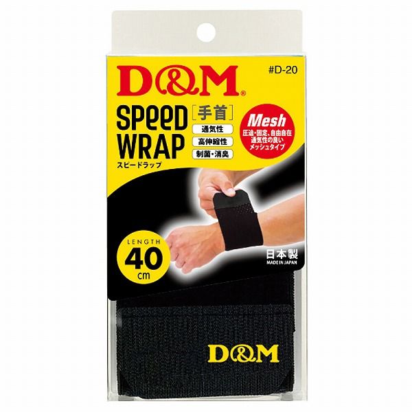 D&M/ディーアンドエム スピードラップ 手首用 ブラック D20 SPEED WRAP 手首サポーター 手首用サポーター 手首 手くび てくび 圧迫固定用 圧迫 固定 湿布留め 包帯 ラップサポーター ラップ式 巻くタイプ 巻くサポーター 面ファスナー 通気性 伸縮性