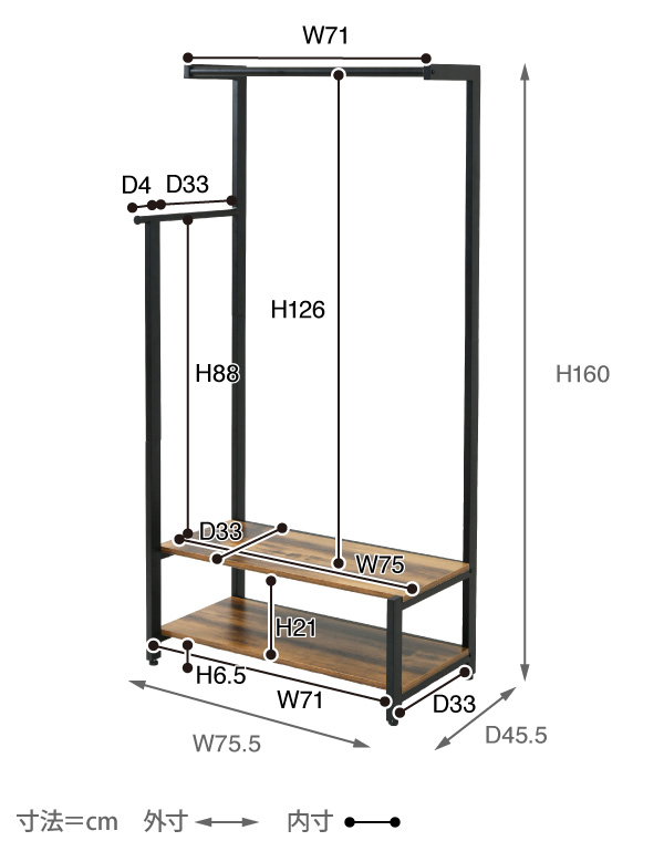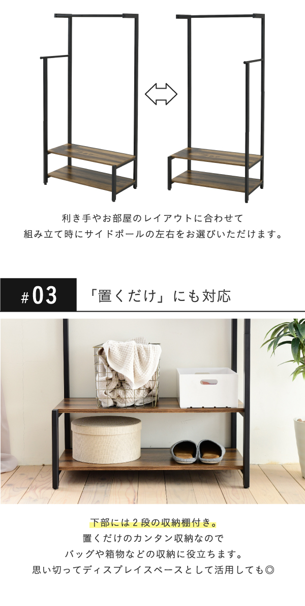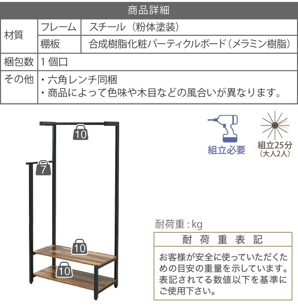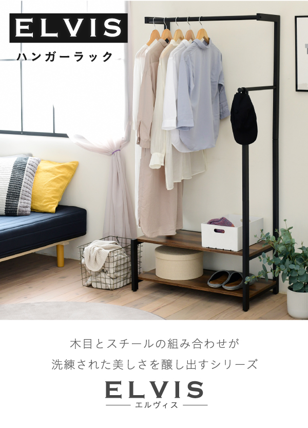ハンガーラック ELVIS(エルヴィス) KKS-0019 幅75.5cm 高さ160cm ハンガーポール コートハンガー 収納付き スチールラック ラック 衣類収納ラック リビング 玄関 木製 おしゃれ インダストリアル