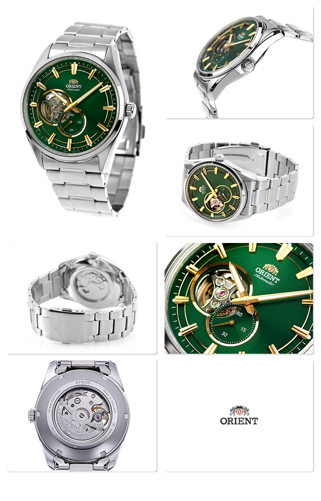 12月下旬入荷予定予約受付中 正規品 7年保証キャンペーン 送料無料 オリエント コンテンポラリー セミスケルトン オープンハート メンズ 腕時計 RN-AR0008E ORIENT CONTEMPORARY Contemporary Semi Skeleton アナログ グリーン スケルトン ◆オリエントより、小秒を搭載したセミスケルトンのモデルがコンテンポラリーコレクションに登場。9時位置のセミスケルトンと6時のスモールセコンドが特徴の立体的なダイヤルが魅力。文字板中心からカーブするヘアーラインでやさしさを表現しています。植え略字は上板をブリッジ状に跨がせたような構造で立体感を演出。カジュアルからスーツスタイルまでシーンを選ばず腕元を飾ります。また、裏蓋もスケルトン仕様になっており、ムーブメントを眺められ、お楽しみいただけます。誕生日などのプレゼントにはもちろん、自分へのご褒美にもおススメです。 発売日:2024年3月発売 機械式腕時計