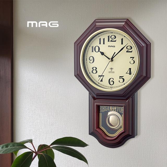MAG マグ 振り子電波壁掛け時計 我が家の演奏会(電波時計 振り子時計 壁掛時計 電波 時計 掛け時計 壁掛け時計 ノア精密 アンティーク 風 レトロ デザイン おしゃれ 和室 洋室 リビング 応接室 オフィス)【F】 即納