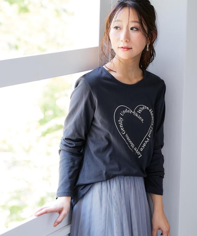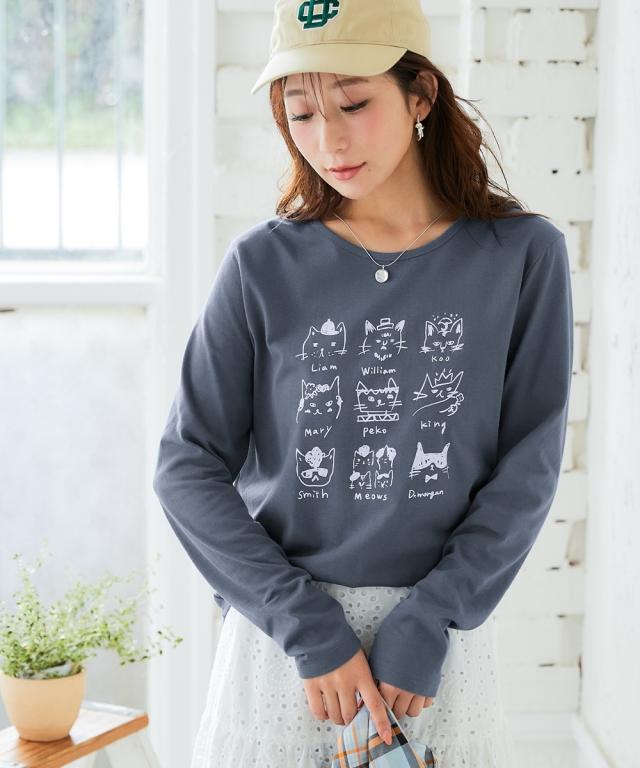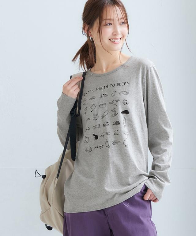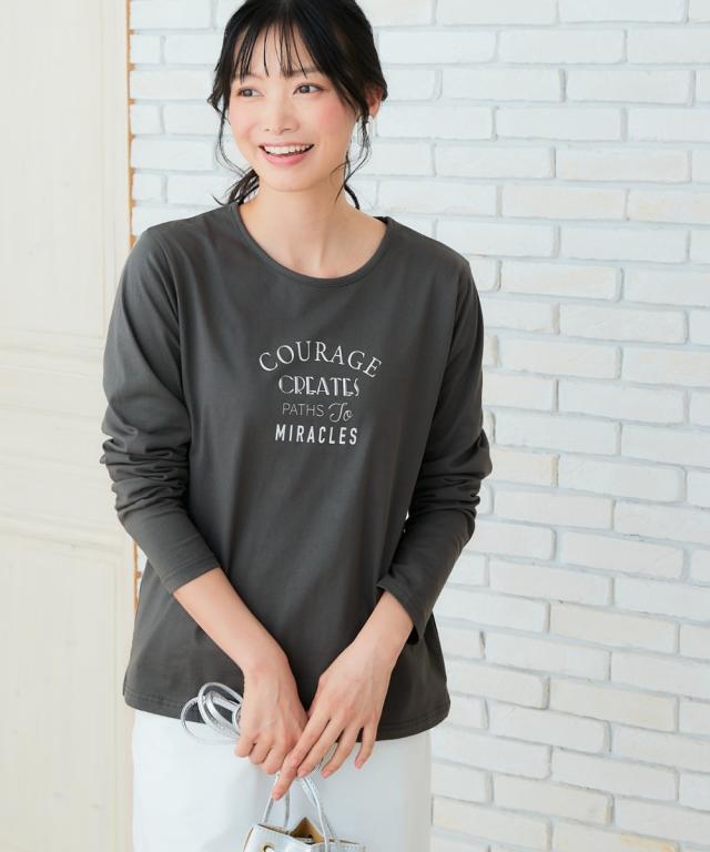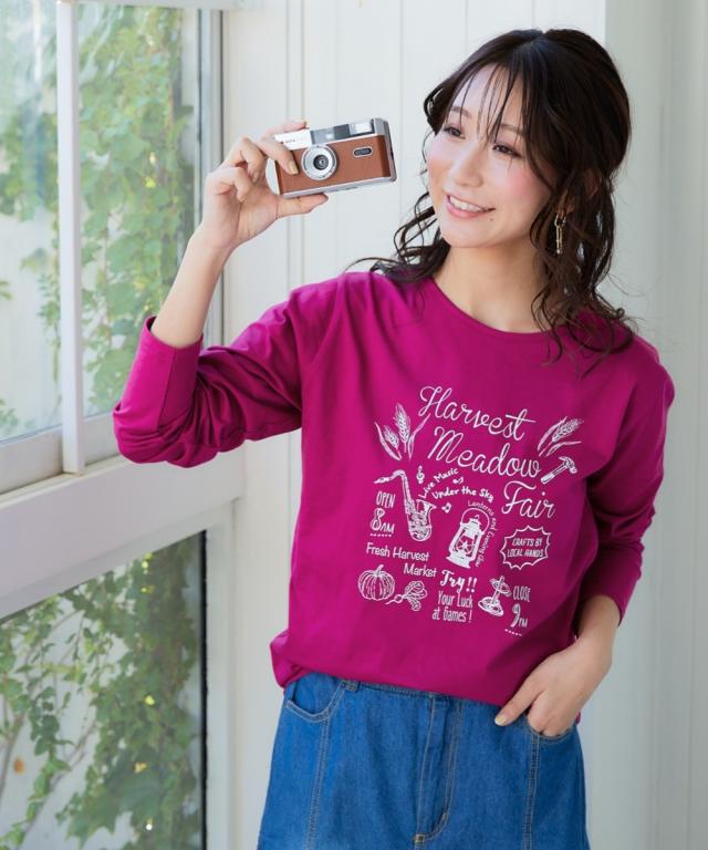 Tシャツ カットソー レディース 綿100% 長袖 プリント UVカット S/M/L/LL ニッセン nissen