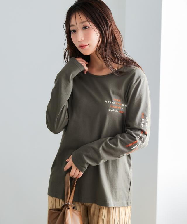 Tシャツ カットソー レディース 綿100% 長袖 プリント UVカット S/M/L/LL