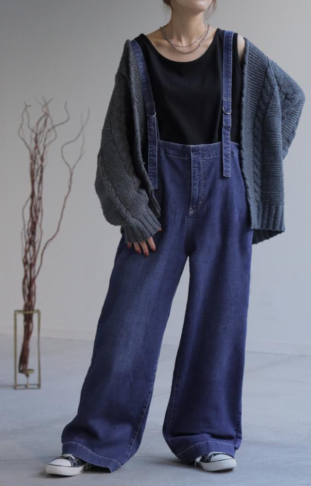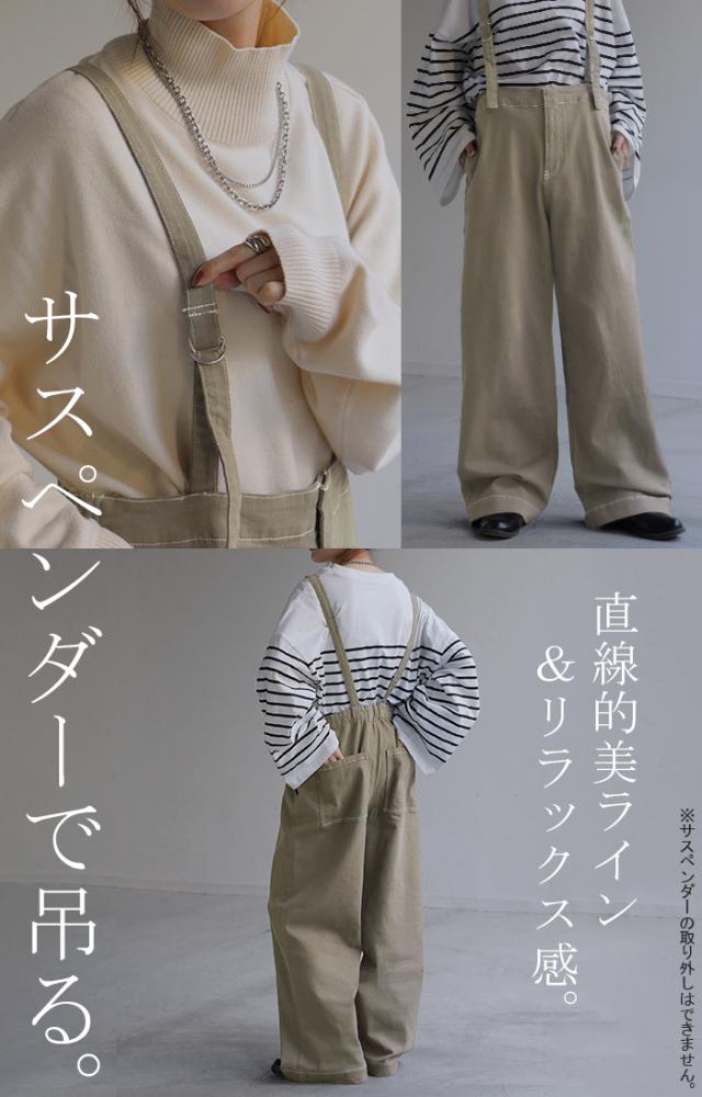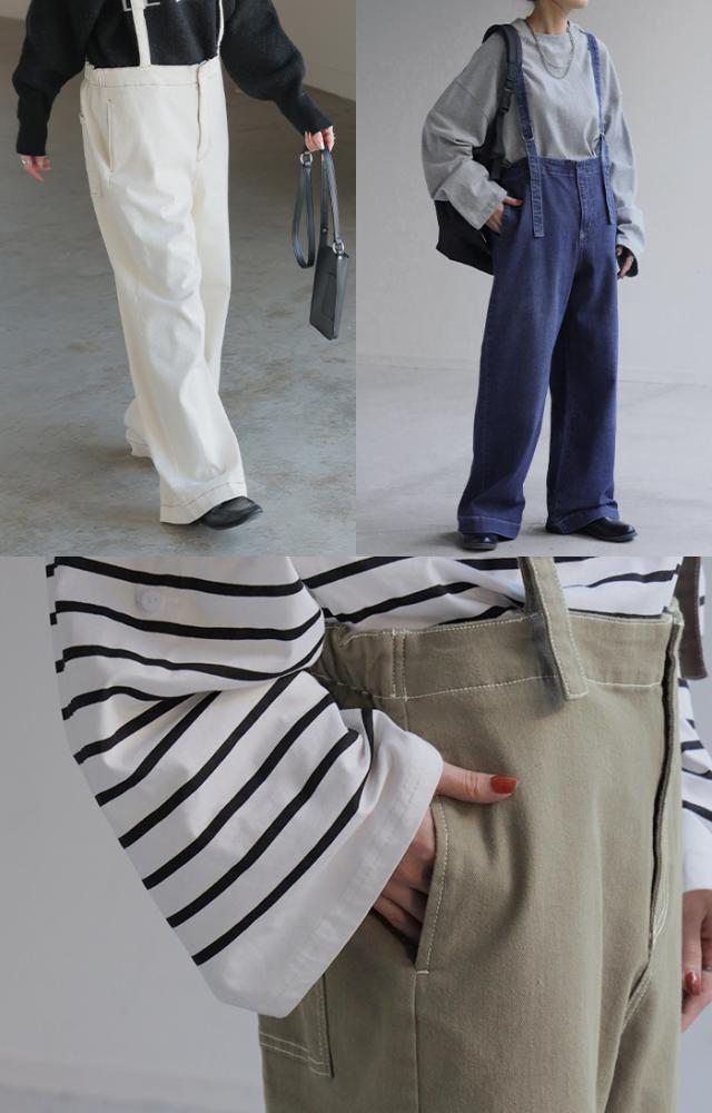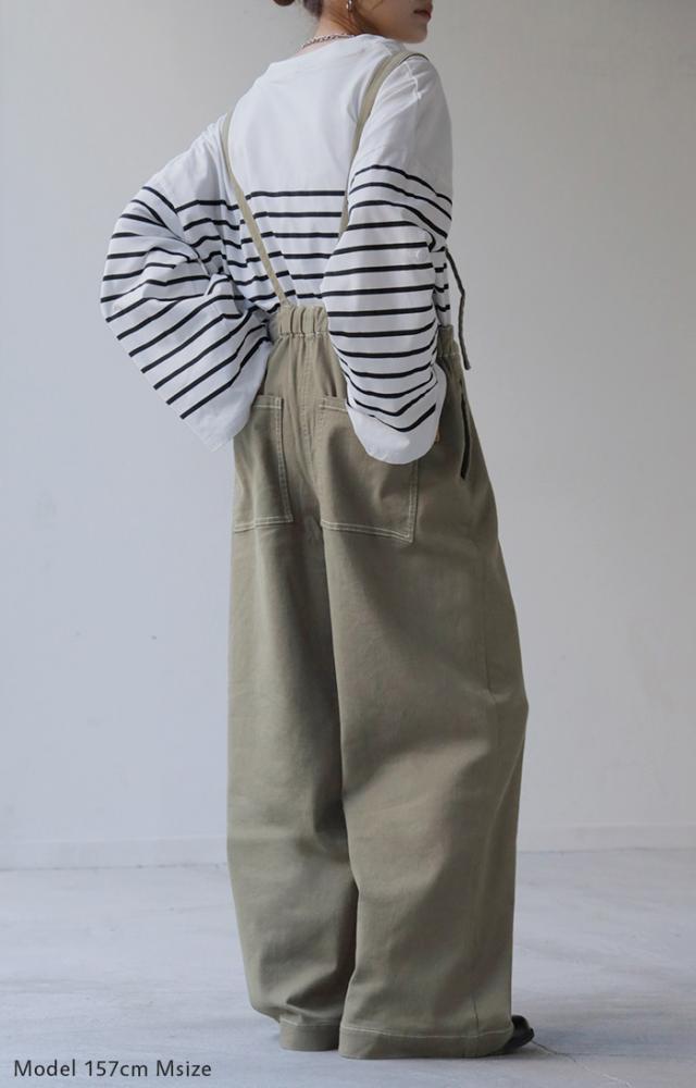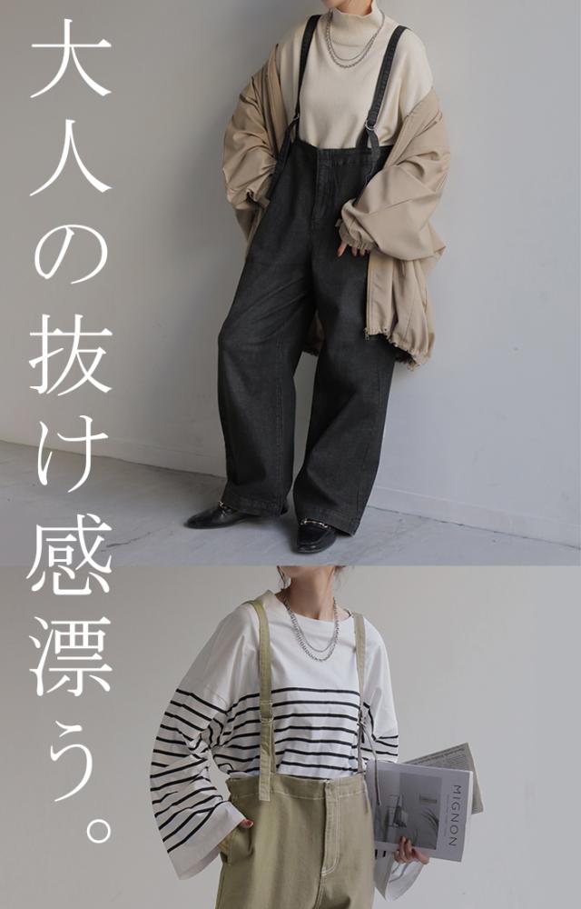 ゆったりとしたシルエットがトレンド感を演出するサロペット風ワイドパンツです。