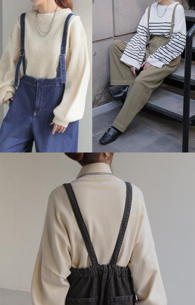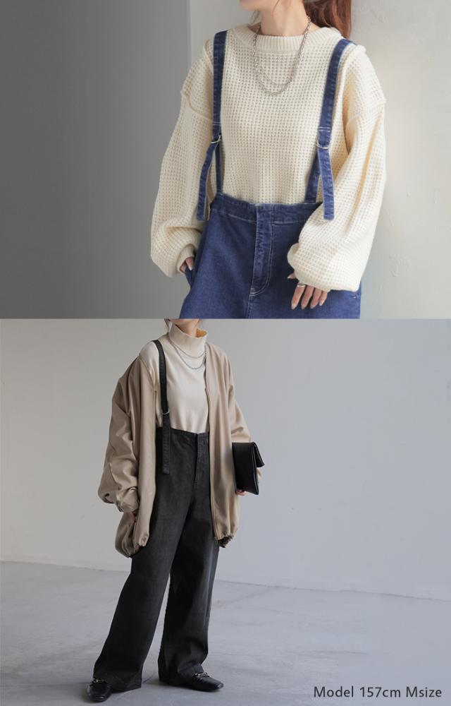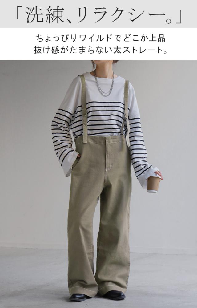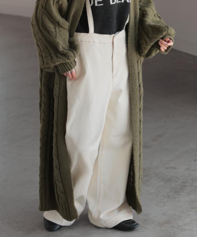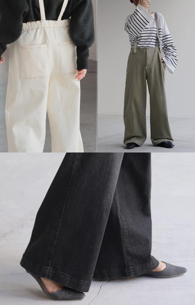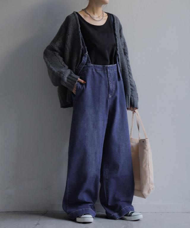 ゆったりとしたシルエットがトレンド感を演出するサロペット風ワイドパンツです。