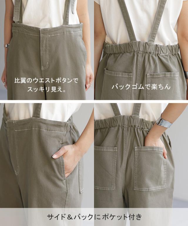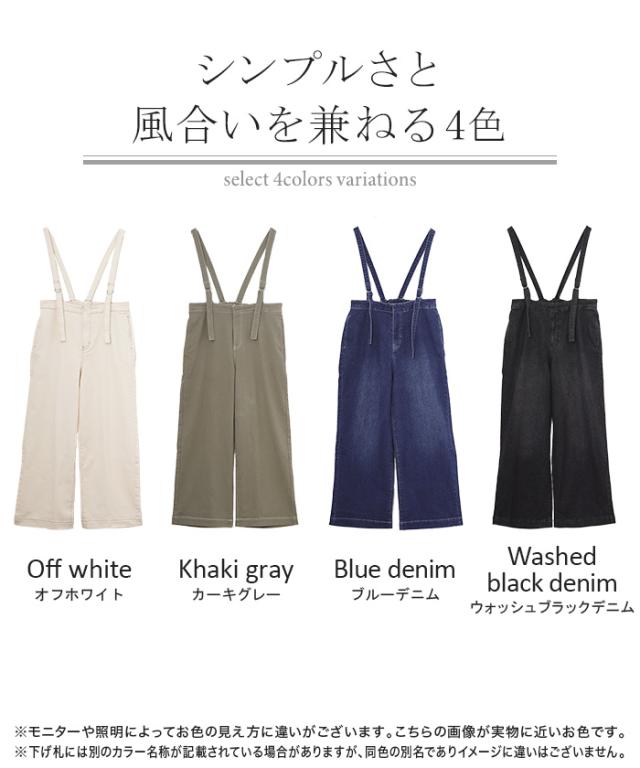 サロペ デニム 大人 オールインワン レディース サロペット 脚長 大きいサイズ つなぎ ワイドパンツ ワイド オーバーオール パンツ ボトムス ストレート ストレートパンツ 体型カバー サスペンダー ゆったり 無地 調節可能 白 カーキ 黒 春 冬 HUG.U 秋新作