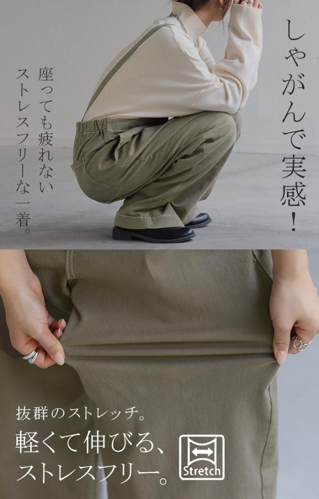 ウエストはゆったりサイズ感でストレッチ素材なので穿き心地もストレスフリーな1枚。
