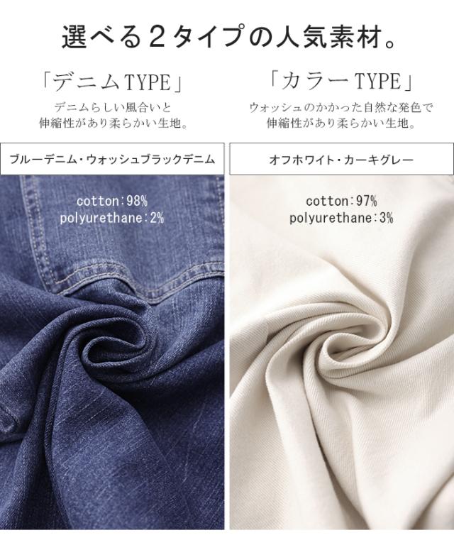| 素材 | デニムタイプ:綿98% ポリウレタン2% カラータイプ:綿97% ポリウレタン3% |