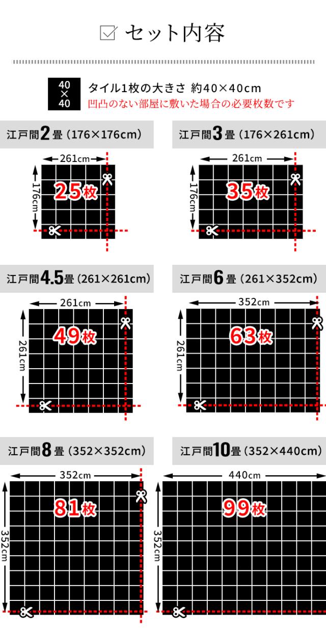 江戸間2畳のお部屋に敷き詰められる枚数をセットにしました。