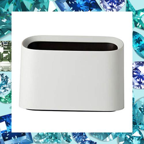 ふたがない卓上ごみ箱。広くて斜めになった開口部。綿パッド、ティッシュペーパー、髪の毛、デンタルフロスなど、サイズが小さいゴミは、いつでも片付けられる。