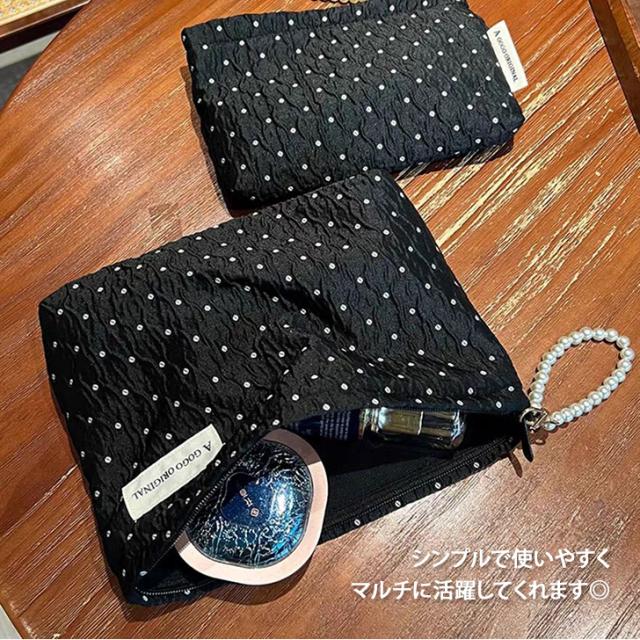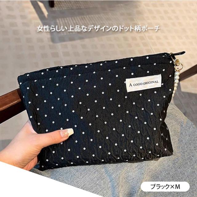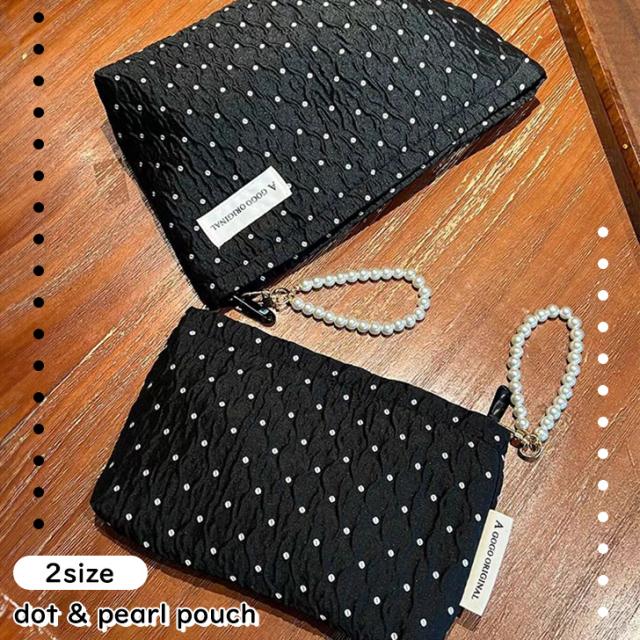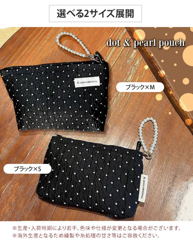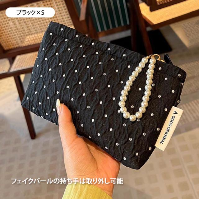 新作 選べる2サイズ フェイクパール 持ち手付き ドット柄 マルチポーチ レディース ポーチ 小物入れ ミニポーチ メイクポーチ コスメ 化粧品 ドット パール 小さめ 大きめ おしゃれ 可愛い 旅行 トラベル 大人