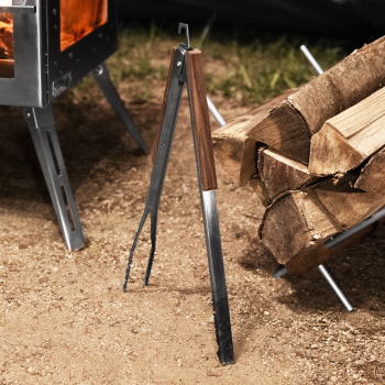 薪や炭を3点でブレずに薪や炭をしっかりと掴める先端分岐構造の自立式の火バサミ「ファイヤートング グラップル」。片側の先端が2点に分岐している事で薪や炭などを3点で掴む事が可能に。掴んだものがブレにくくなり安全かつ安定したハンドリングを実現しました。 かつなんと自立式で立っている姿もなんとなく愛おしく思えてくるような存在感があります。(地面に転がってどこいったかなぁなんて時もしっかりと立って自ら存在感をアピールしてくれます)閉じた状態でも開いた状態でも立つ自立式。閉じた状態をキープするロック機能も搭載。フック付きで薪ストーブやグリルに引っ掛けられるのも嬉しいポイント。先端のかぎ爪は火かき機能だけでなくダッチオーブン等の蓋を引っ掛けて使用する事も可能。先端部の一部にMt.SUMIのロゴが小さくあしらわれています。持ち手はウォルナットで手に馴染む一本。ぜひ火を安全に楽しむ道具としてお迎え下さい!■サイズW39.5×D3.7×H3.5cm■重量200g■材質:ステンレス、木(ウォールナット)■生産国:中国