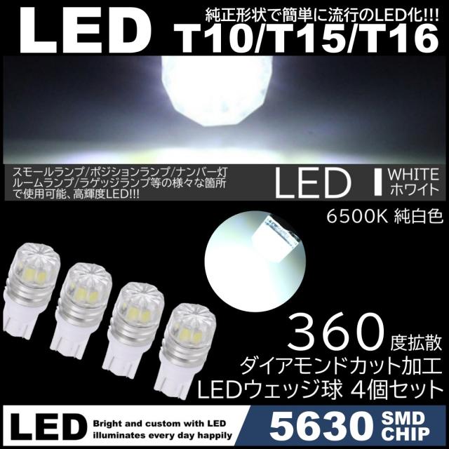 ダイヤカットレンズ 高輝度LED T10 T15 T16 拡散 LED スモール球 ポジション球 ルームライト ライセンスランプ カーテシ ホワイト 4個SET
