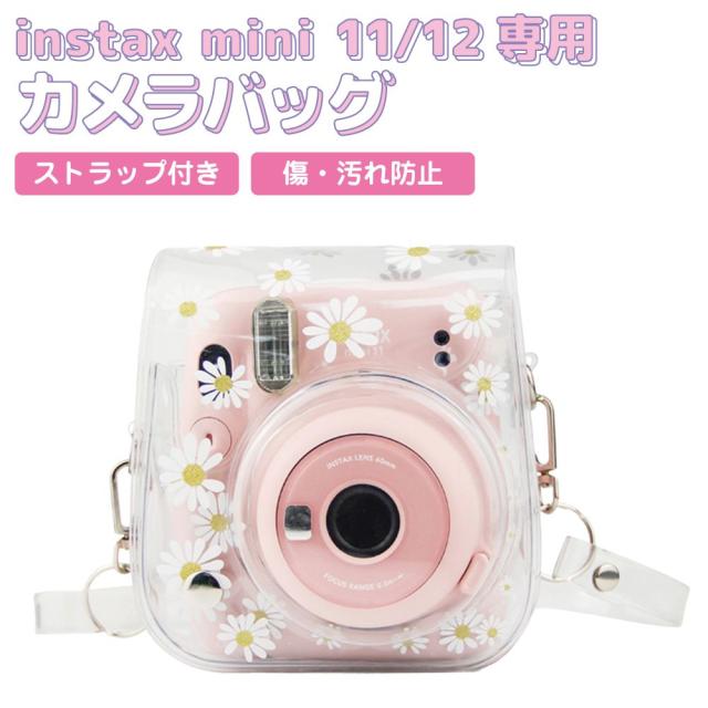 チェキ ケース カバー instax mini 11/12 デイジー柄チェキバッグ ストラップ付き IX-DB2680 | カメラバッグ 花柄 クリア 透明 ソフトケース キズ 汚れ 保護 収納 持ち運び かわいい ショルダー ストラップ アクセサリー