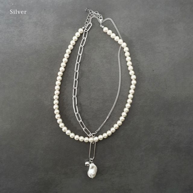 新作 フェイクパール×チェーン2連ネックレス レディース ネックレス ペンダント フェイクパール アクセサリー 2連 セット 上品 高見え エレガント カジュアル ガーリー 韓国 大きめ 仕事 会社 ダブル 重ね付け