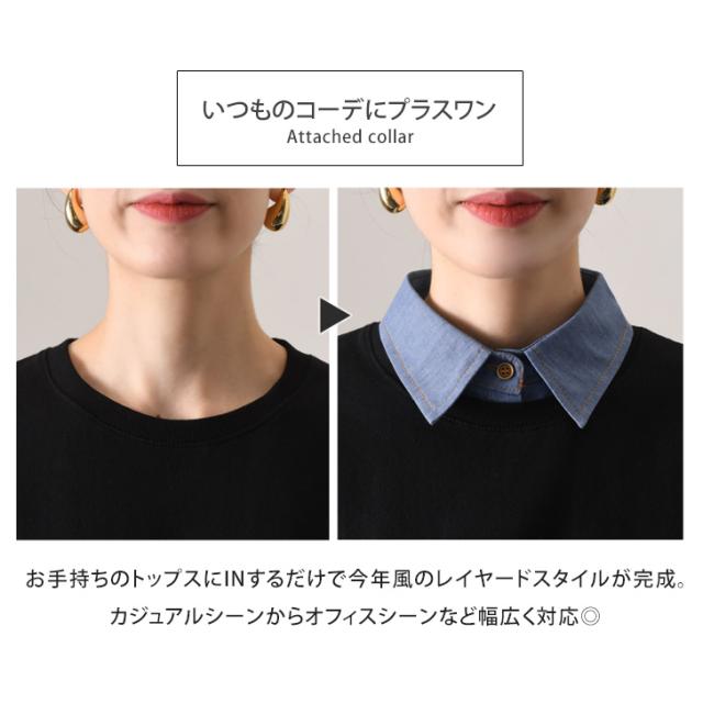 新作 選べる2カラー ダンガリーシャツ レイヤード つけ襟 付け襟 レディース デニムシャツ シャツ ブラウス 無地 インナー レイヤード風 重ね着風 春夏 秋冬 付け衿 つけ衿 おしゃれ かわいい ファッション小物