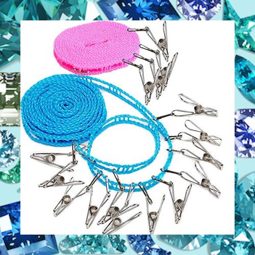 ?セット内容:2本入洗濯ロープ(ブルー、ピンク)、各に5メートルの長さで, 12個の金属クリップ ;
