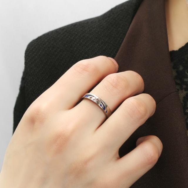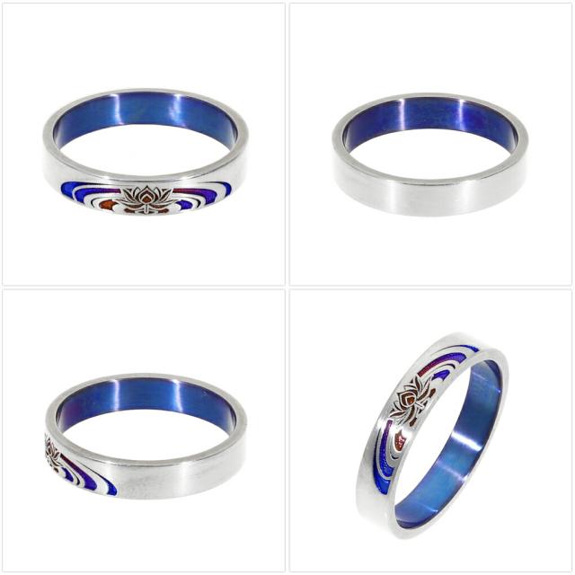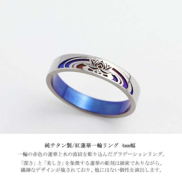 Hizm 純チタン 紅蓮華 一輪 グラデーション リング 指輪 4mm幅 1〜30号 チタン 金属アレルギー アレルギーフリー 蓮華 蓮 波 彫刻 削り出し 和 和風