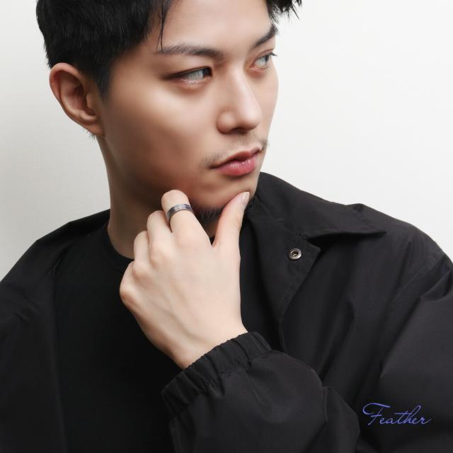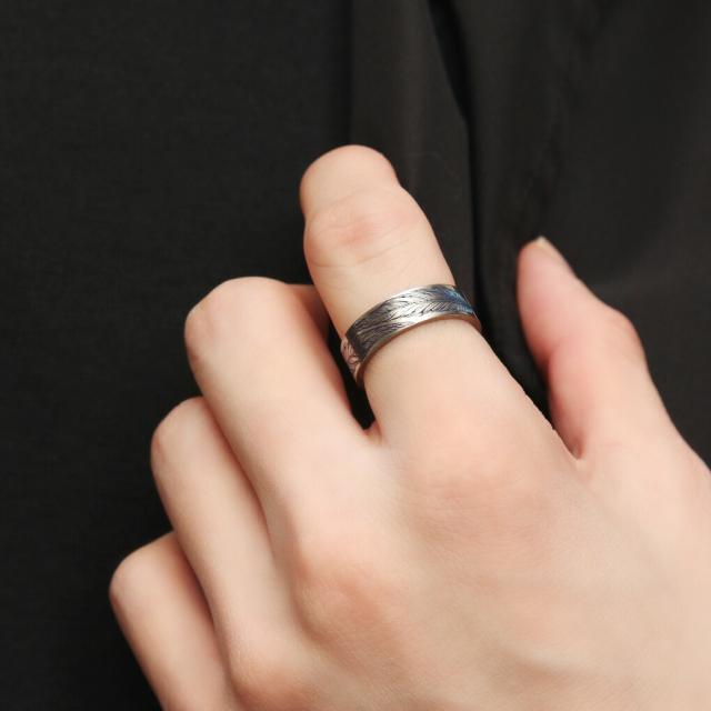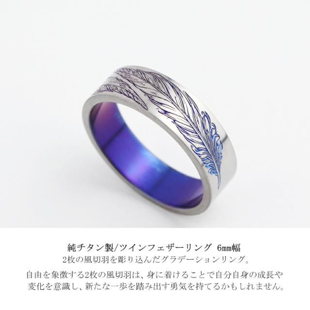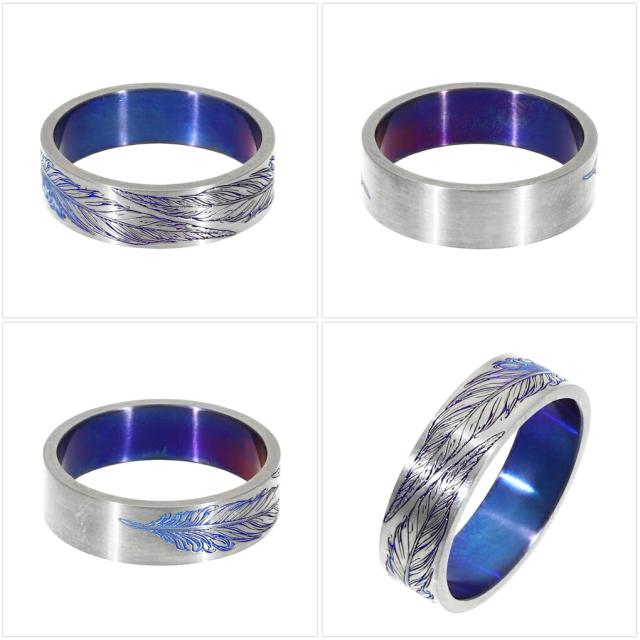 Hizm 純チタン ツイン フェザー グラデーション リング 指輪 6mm幅 1〜30号 チタン 金属アレルギー アレルギーフリー 羽根 羽 彫刻 削り出し きれいめ