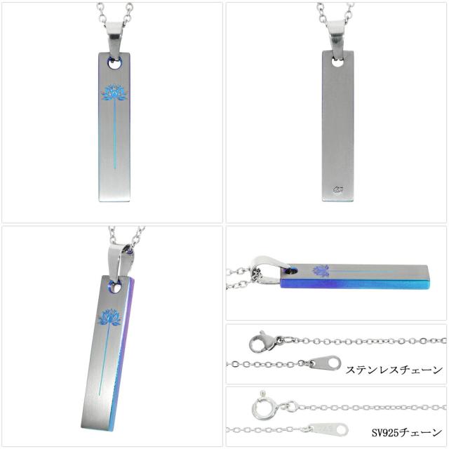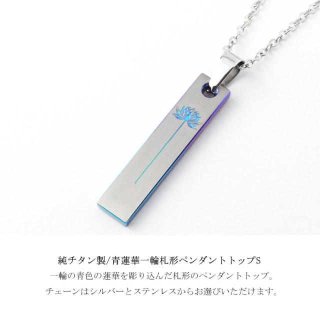 Hizm 純チタン 札形 青蓮華 一輪 グラデーション S ペンダント ネックレス チタン 金属アレルギー アレルギーフリー 蓮 花 彫刻 削り出し プレート 和