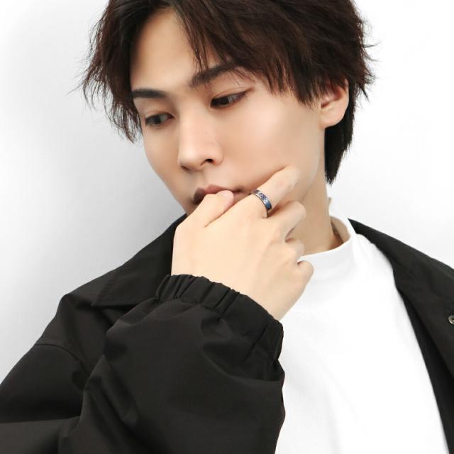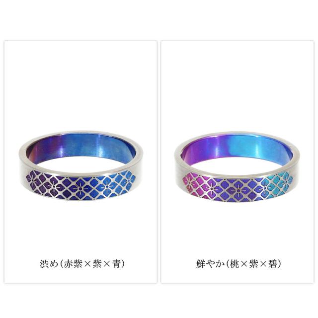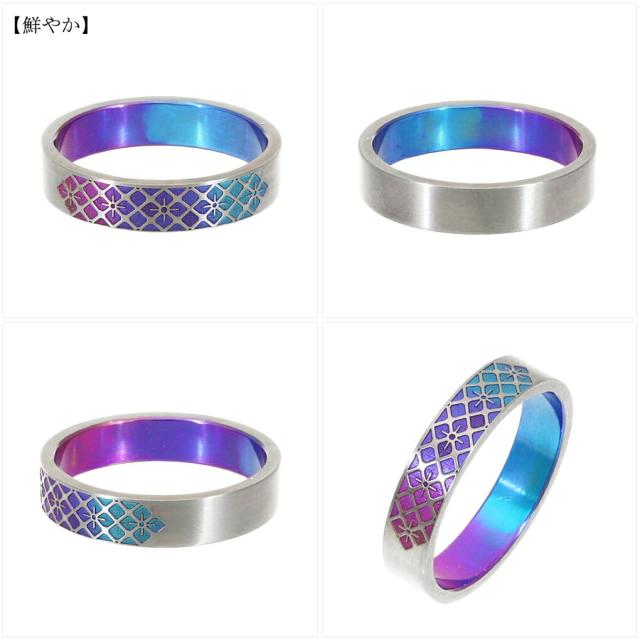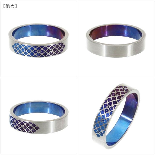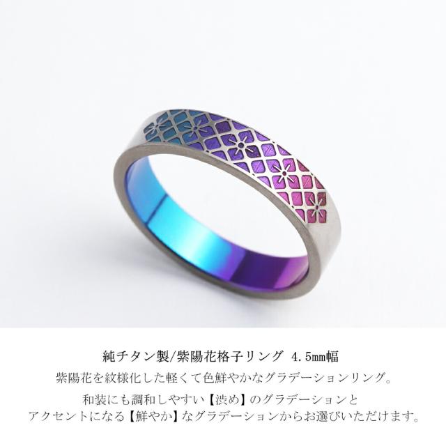 Hizm 純チタン 紫陽花 格子 グラデーション リング 指輪 4.5mm幅 1〜30号 チタン 金属アレルギー アレルギーフリー あじさい 花 彫刻 削り出し 和