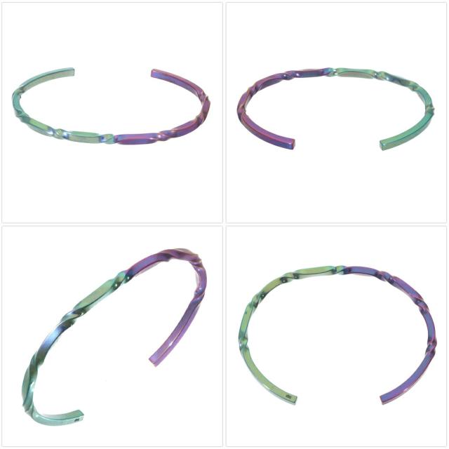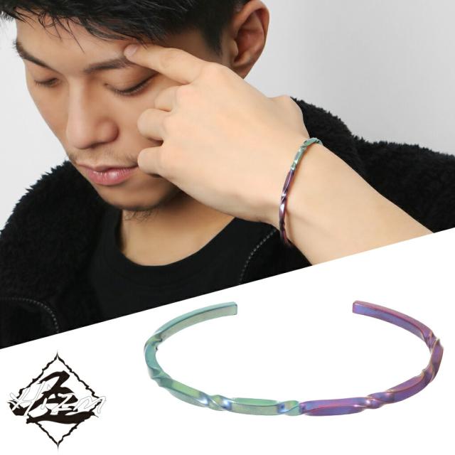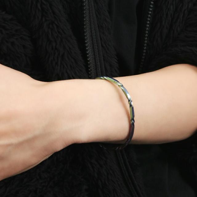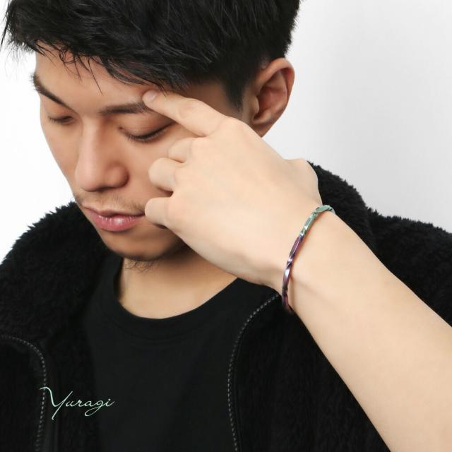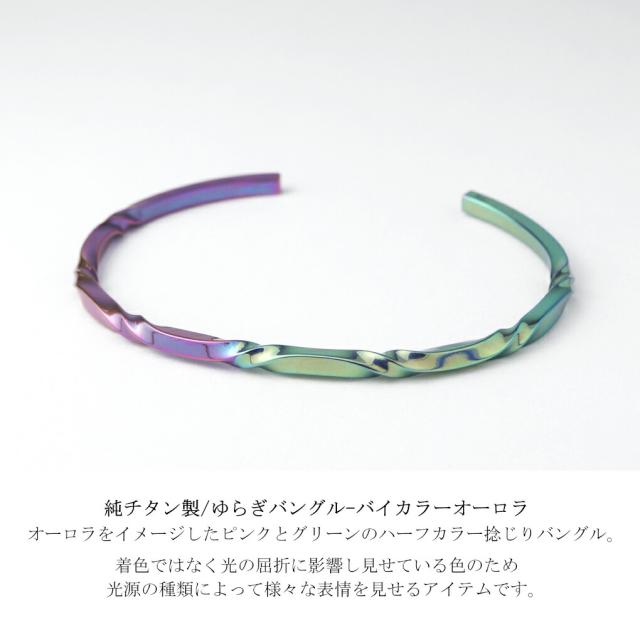 Hizm 純チタン ゆらぎ バイカラー オーロラ バングル ブレスレット チタン パープル 紫 グリーン 緑 ねじり 捻り ツイスト 上品 大人 きれいめ きれい