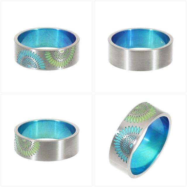Hizm 純チタン 向日葵 グラデーション リング 指輪 7mm幅 1〜30号 チタン 金属アレルギー アレルギーフリー ひまわり 花 華 彫刻 削り出し 和 和風