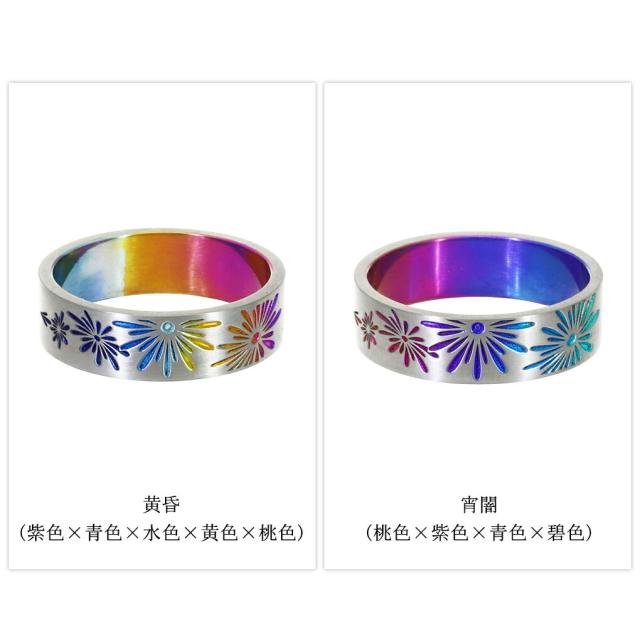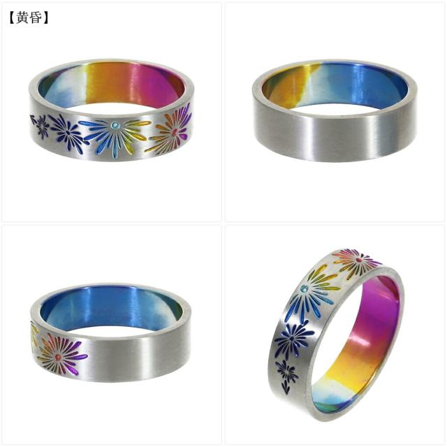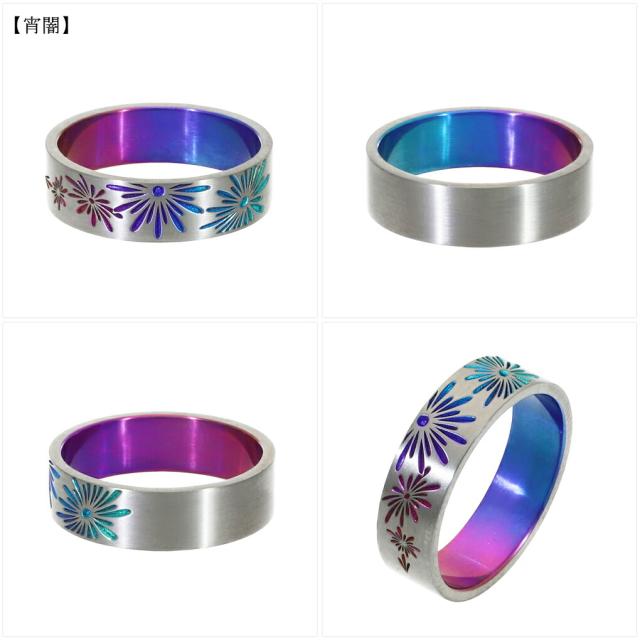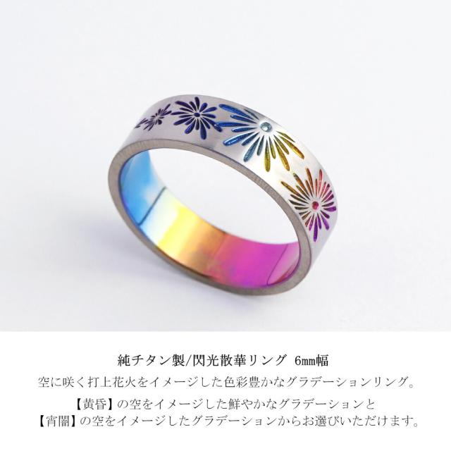 Hizm 純チタン 閃光散華 グラデーション リング 指輪 6mm幅 1〜30号 チタン 金属アレルギー アレルギーフリー 花火 花 華 彫刻 削り出し 和 和風