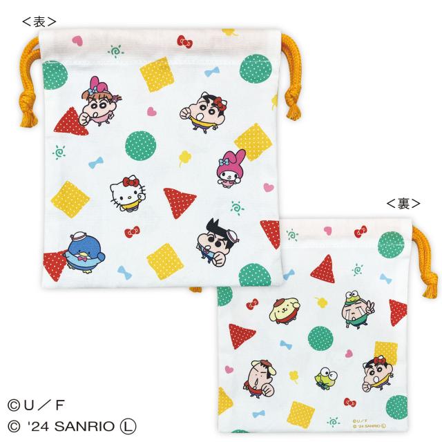 トシK1-KI002 【クレヨンしんちゃん×サンリオキャラクターズ】 巾着【しんちゃんとサンリオキャラ】【コラボ】【ポーチ】【ケース】【小物入れ】【袋】【収納】【雑貨】【グッズ】【かわいい】