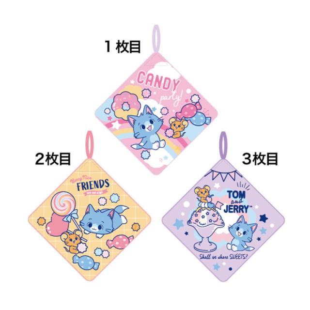 【とむとじぇりー】【トムとジェリー】ループタオル3枚組【キャンディーパーティー】【ワーナー】【アニメ】【ループ付きタオル】【紐付き】【洗面】【トイレ】【キッチン】【保育園】【