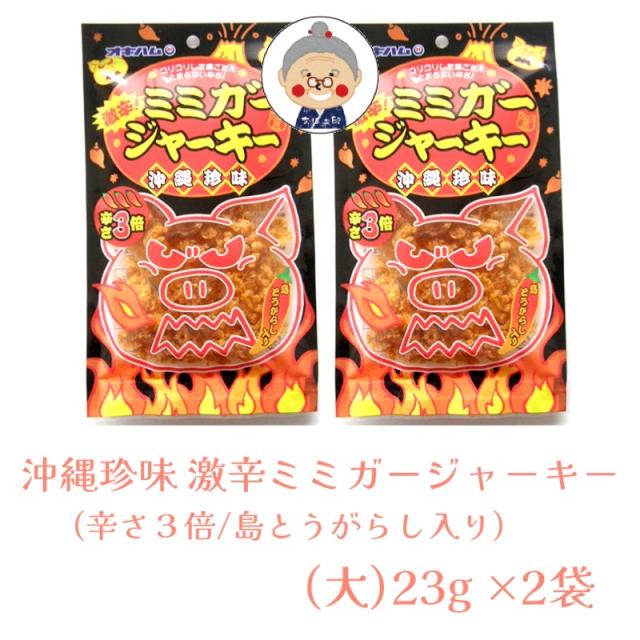 辛さ3倍】激辛! ミミガージャーキー 島とうがらし入り 辛さ3倍 【メール便送料無料】 (大)23g×2袋 ギフト プレゼント 沖縄珍味 激辛 沖縄お土産 沖縄 通販 沖縄土産 オキハム お試し |干し肉 |