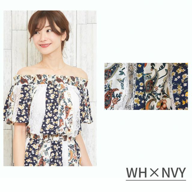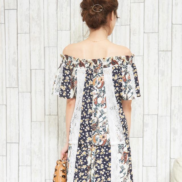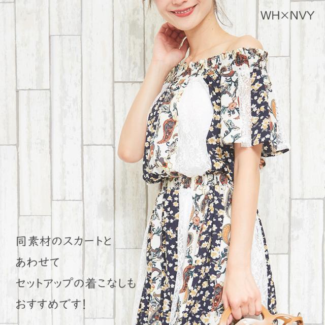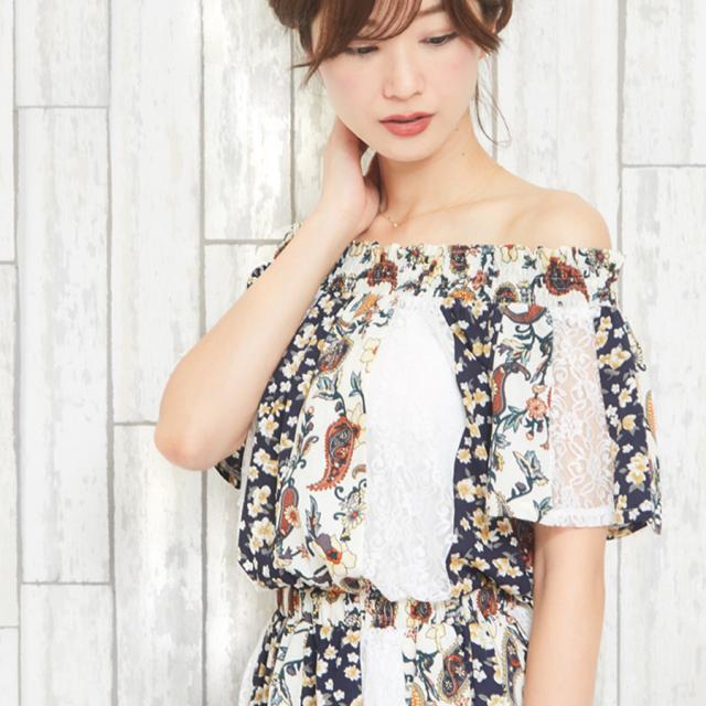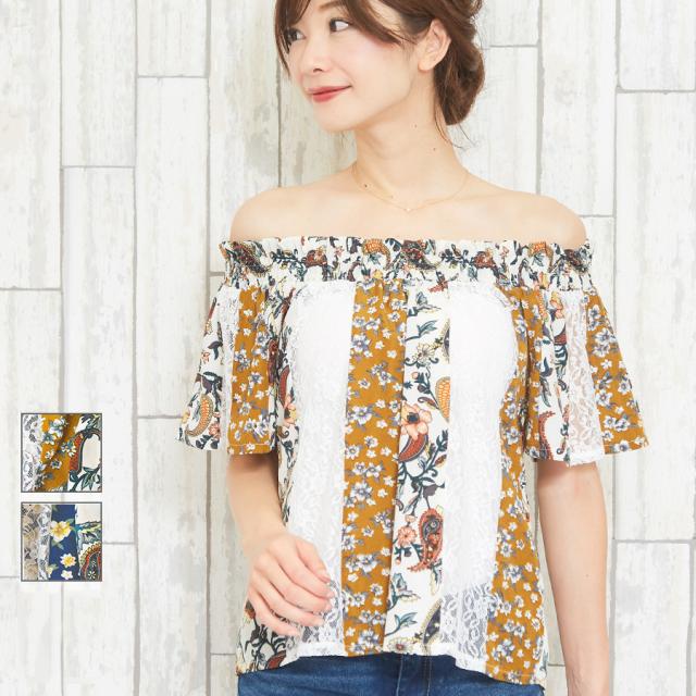 オフショルトップス オフショル トップス 花柄 レトロ 春 夏 インナー フェミニン ガーリー カジュアル メール便送料無料