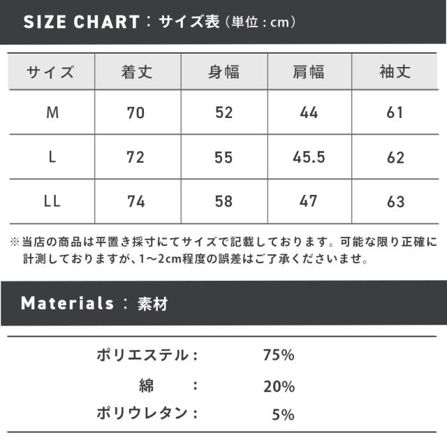 着丈: 72cm 身幅: 55cm 肩幅: 45.5cm 袖丈: 62cm