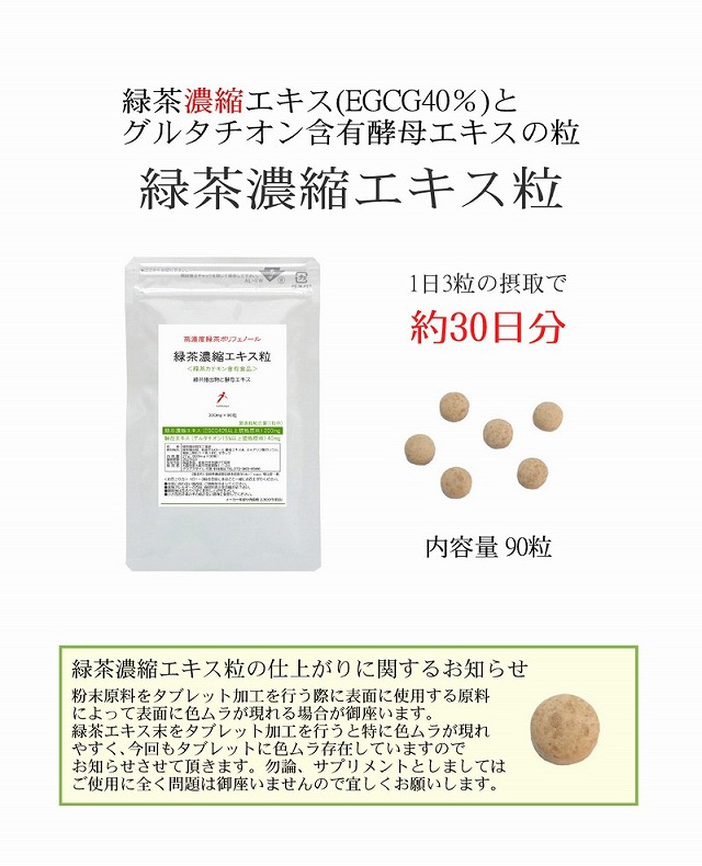 緑茶濃縮エキス(EGCG40%)とグルタチオン含有酵母エキスの粒
