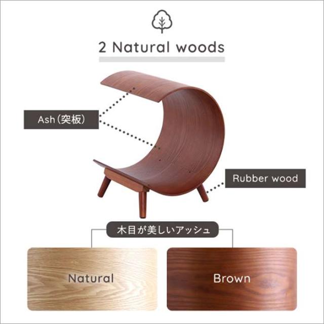 ペットベッド。カラーは、ナチュラル(4535306215934:SH-01-PBT-Y--NA)、ブラウン(4535306215927:SH-01-PBT-Y--BR)、です。脚付きペットベッドの屋根付きタイプ!オブジェのような目を引くデザインは、お部屋のアクセントにもなります。専用のマットレスはカバーを外して洗濯が可能。汚れてもお手入れ簡単です。