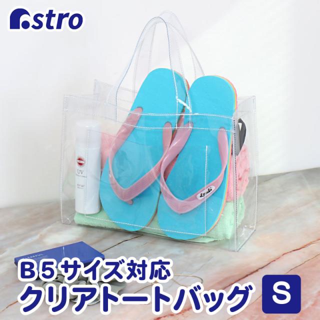 ビニールバッグ Sサイズ クリアバッグ B5サイズ対応 ポケット付き 透明 トートバッグ プールバッグ 手提げ 痛バッグ スパバッグ アストロ 327-04