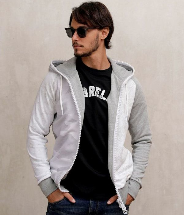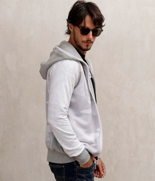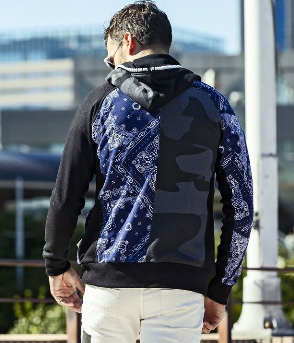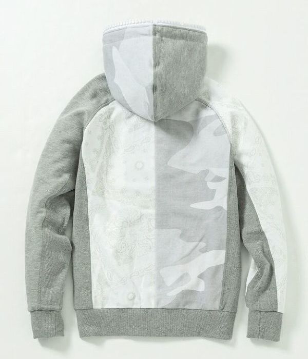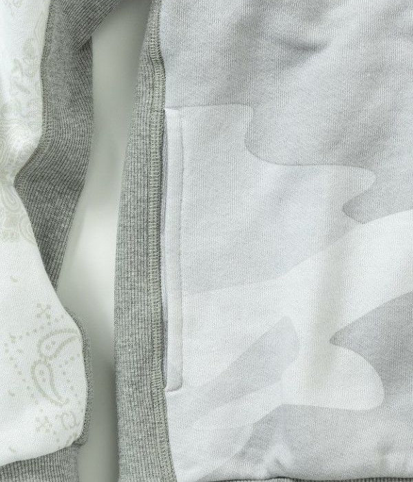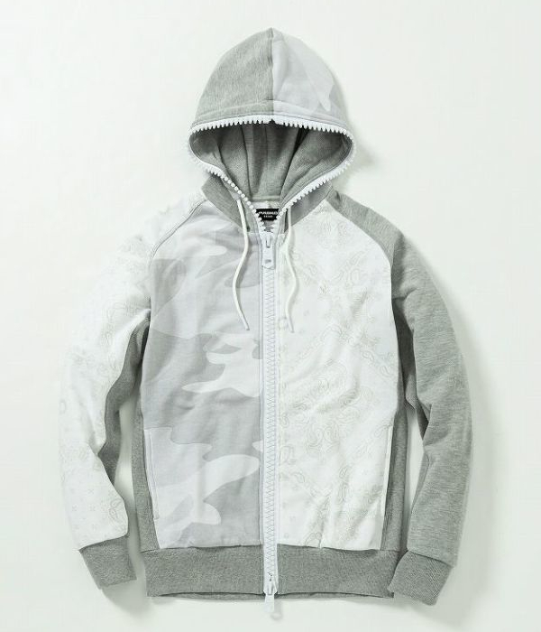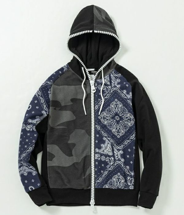 人気のカモ柄×ペイズリーで大胆に切り替えたジップアップフーディー。キャッチーなビッグファスナーがさらに遊び心あるアクセントをプラスします。