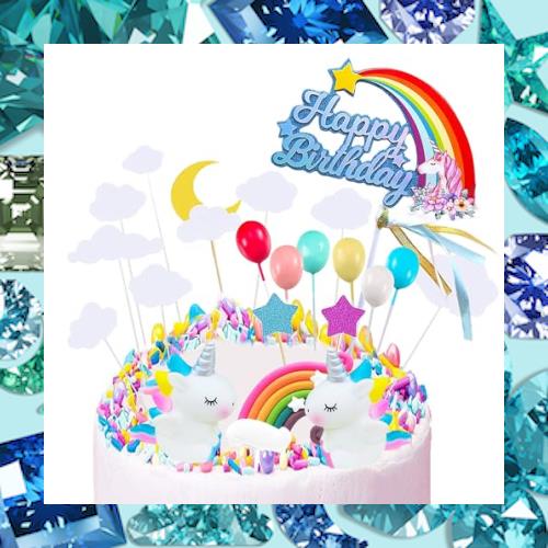Kingsie ケーキトッパー ユニコーン 豪華 ケーキ デコレーション レインボー 虹 風船 可愛い ケーキ挿入カード 誕生日/パーティー ケーキ