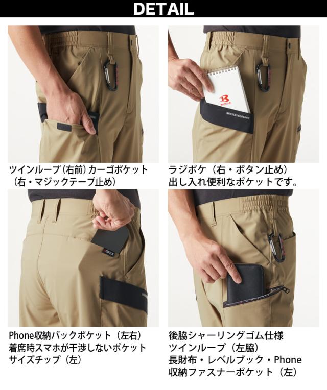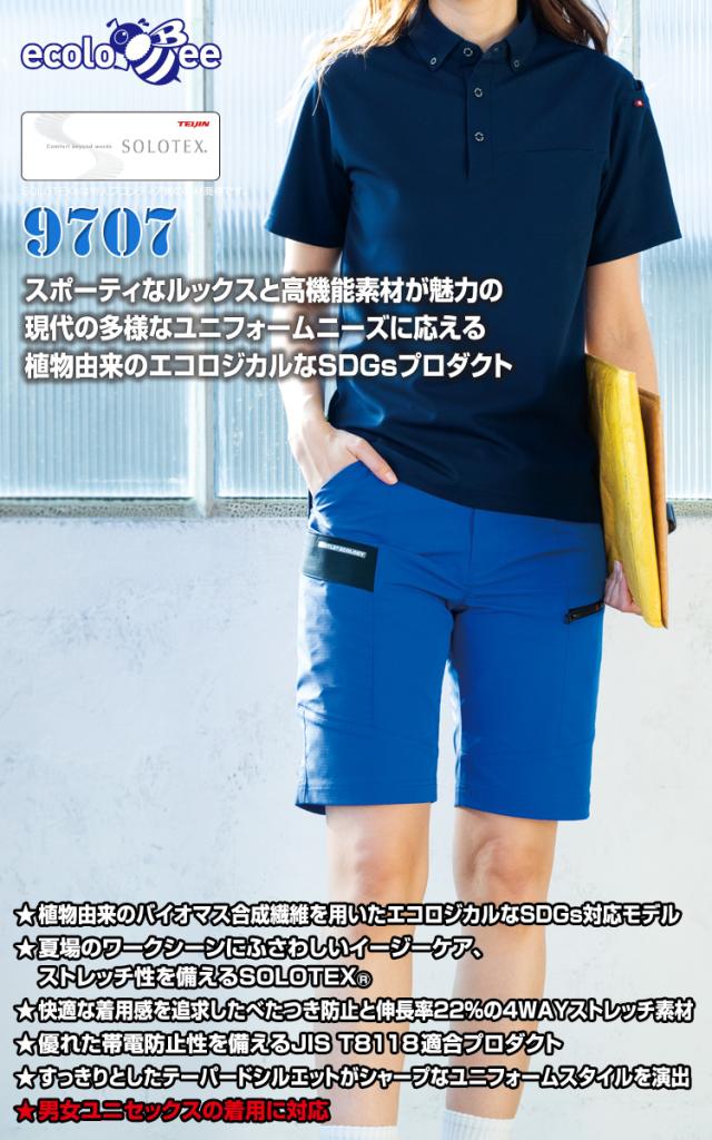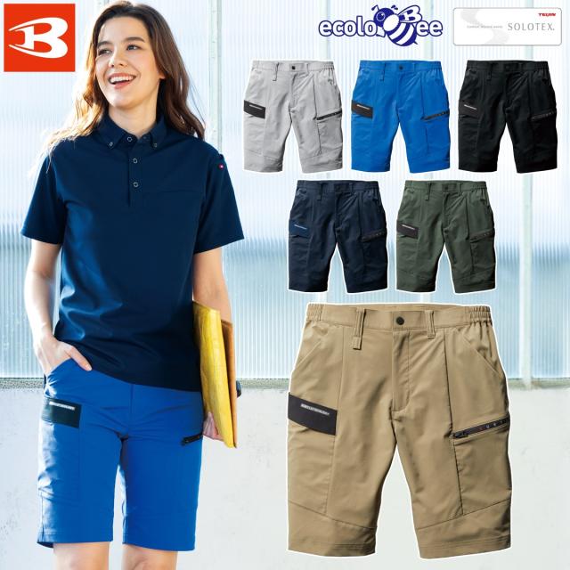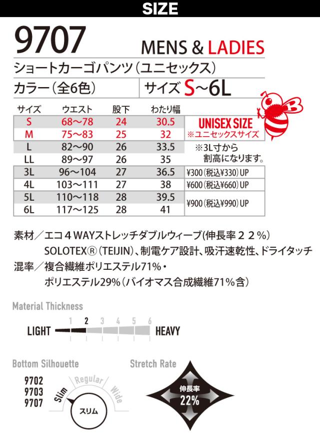バートル ショートカーゴパンツ(ユニセックス)9707 S〜4L SDGs 短パン スリム ストレッチ 伸長率22% 吸汗速乾 制電 メンズ レディース エコ 春夏 作業服 作業着 BURTLE