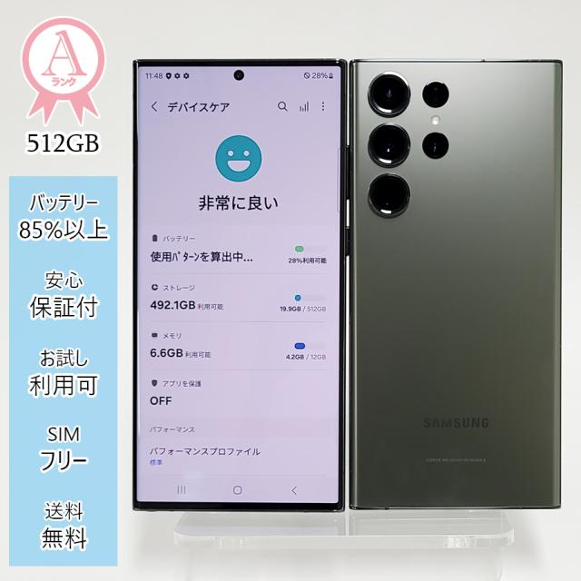 中古 Galaxy S23 Ultra 本体 512GB SIMフリー SM-S918N グリーン Aランク Android スマホ