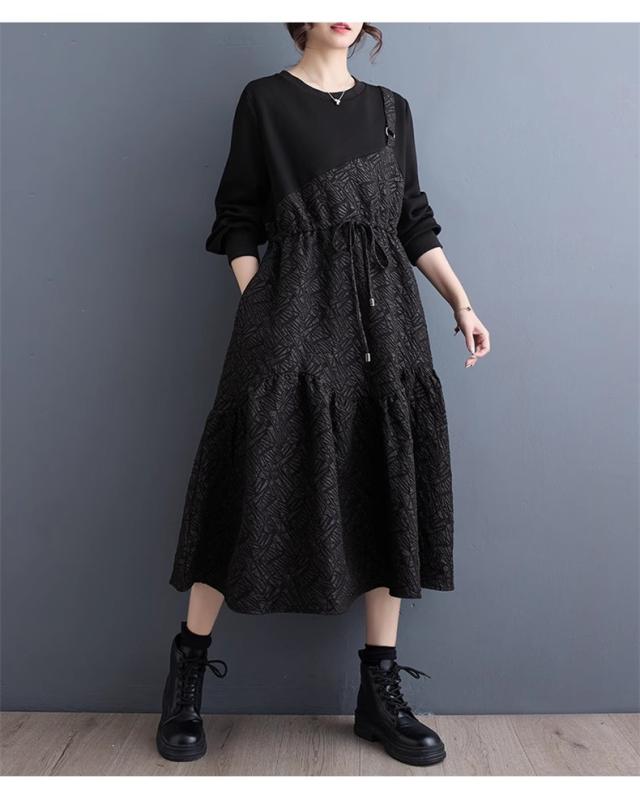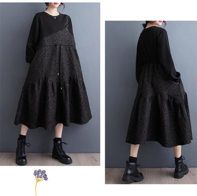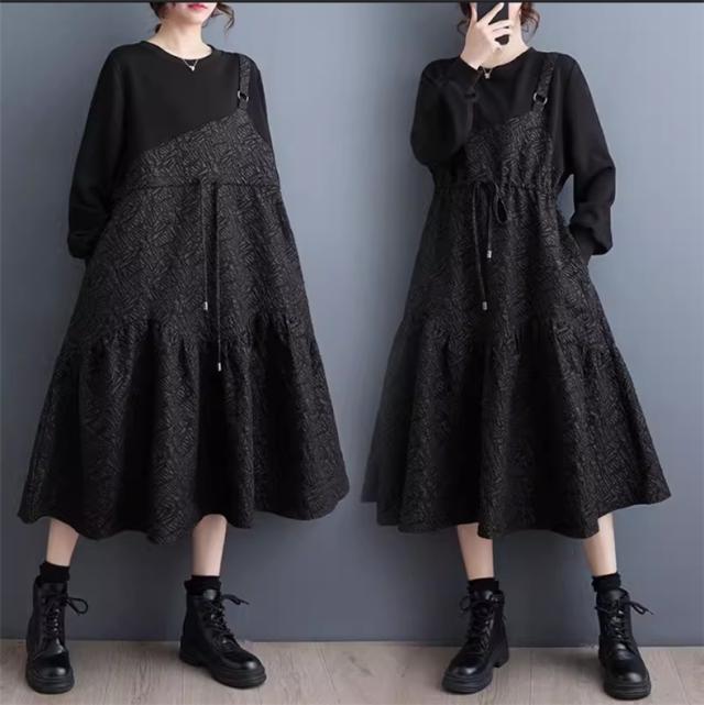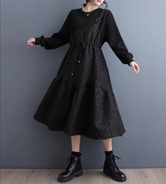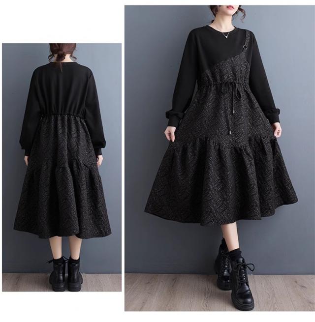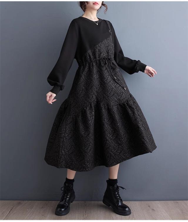人気ワンピース レディース 春服 切り替え 異素材 シーズンムード漂う シャツワンピース 長袖 自然に体型カバー ゆったりシルエット ギャザーワンピース