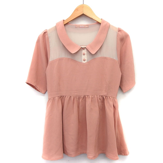 【中古】ダズリン dazzlin ブラウス カットソー 切替シフォン 無地 シンプル ハーフボタン ペプラム 五分袖 M