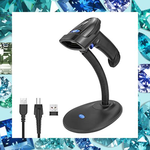 NETUMワイヤレス2次元QRバーコードスキャナー(スタンド付き)、Bluetoothおよび2.4GワイヤレスおよびUSB有線ハンズフリーバーコードリー