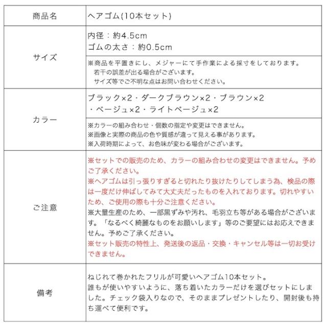 ねじれて巻かれたフリルが可愛いヘアゴム10本セット。